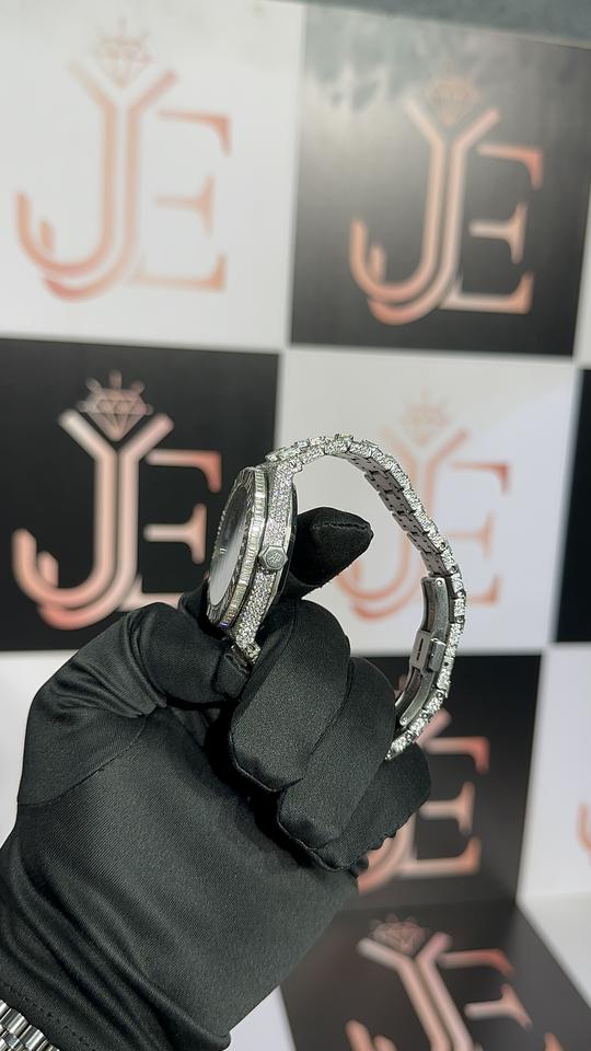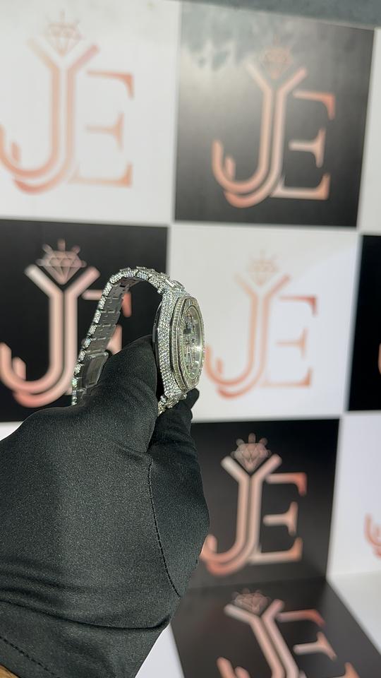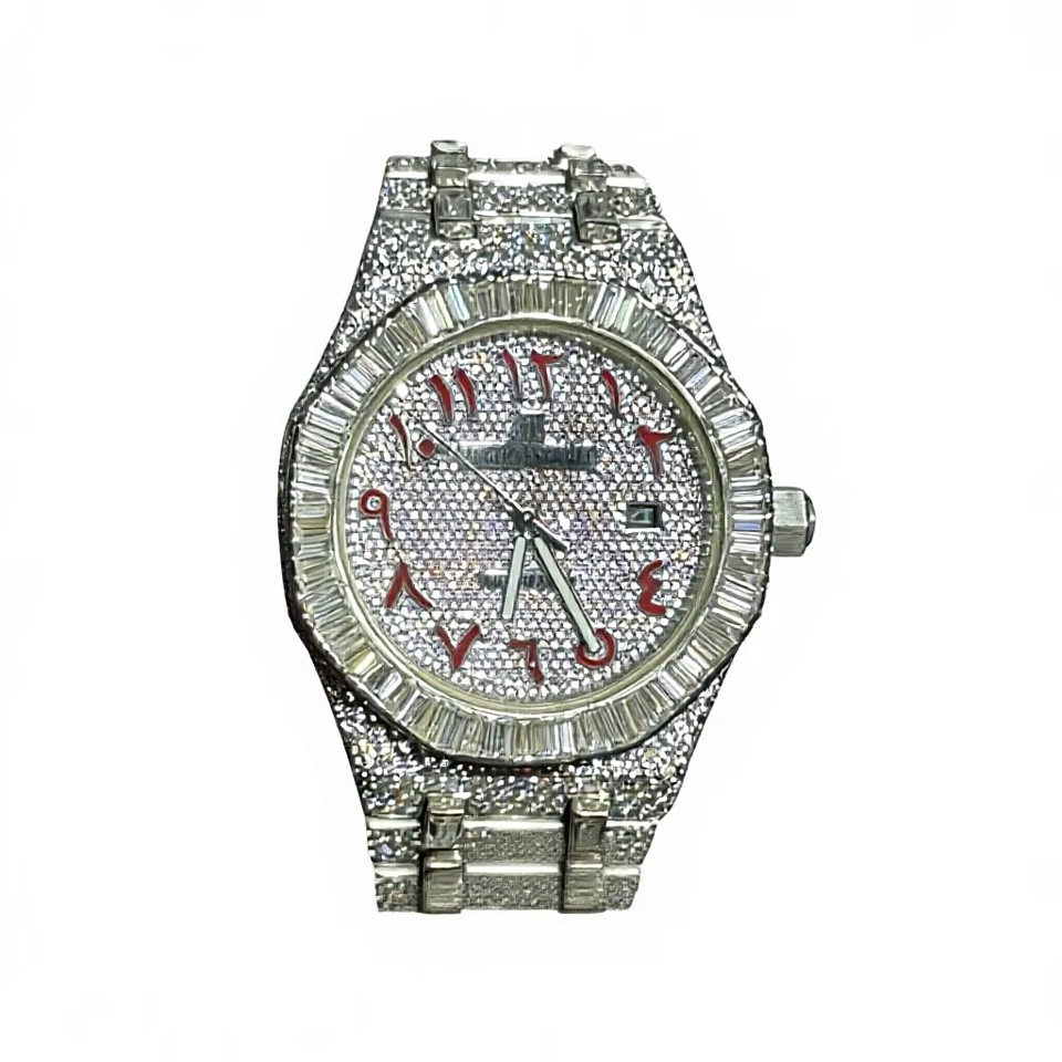 นาฬิกาโมอิสซาไนต์ 48.25 กะรัต ดีไซน์หรูหราทันสมัย สายสแตนเลส ตัวเรือนสเตนเลสสตีล หน้าปัดผสมแบบดิจิตอลและเข็ม กระจกกันน้ำ
