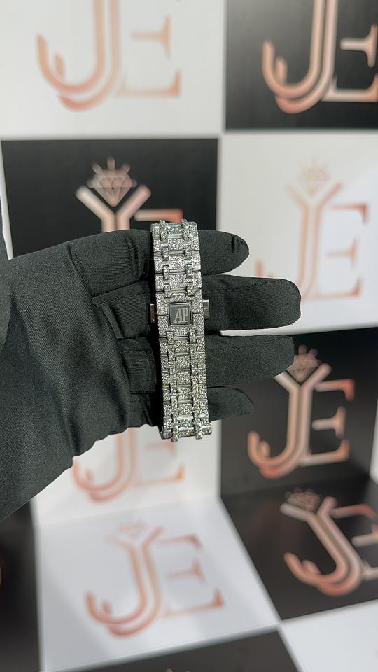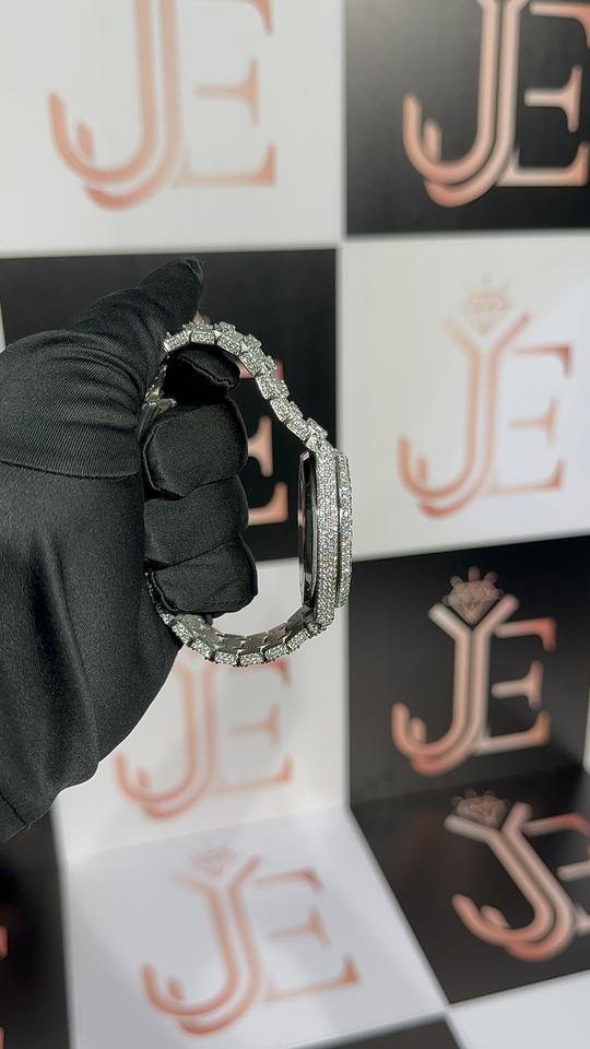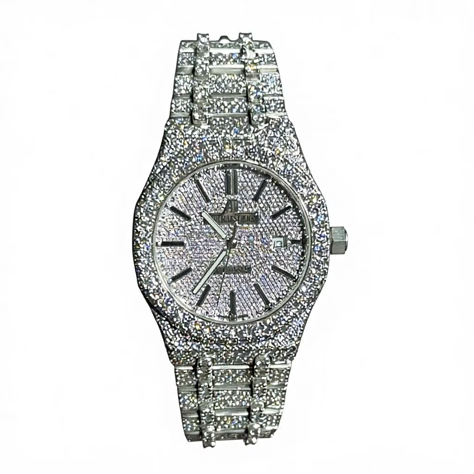 มอยซาไนต์ 50.50 CT คัท ไดมอนด์ วิคตอเรียนนาฬิกาแฟชั่นสุดหรูผู้ชายผู้หญิงตัวเรือนเหล็ก รอนดา ดิจิตอลกระจกกันน้ำหน้าปัด