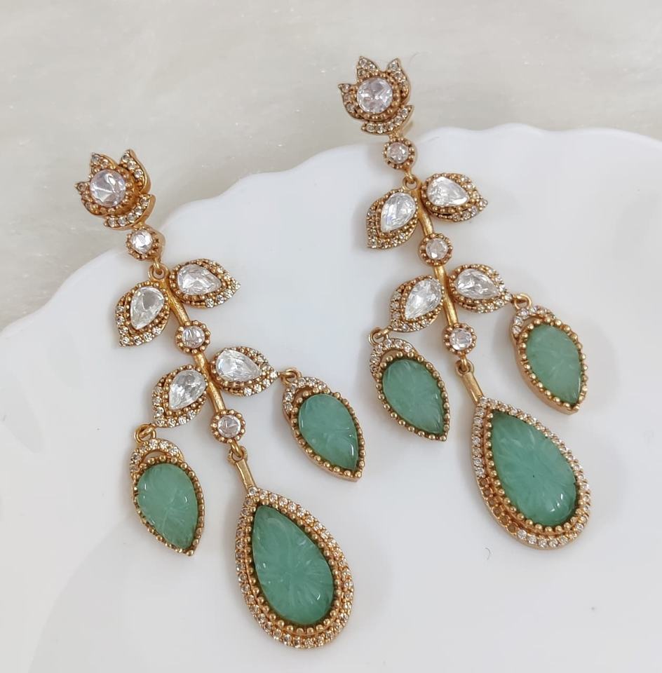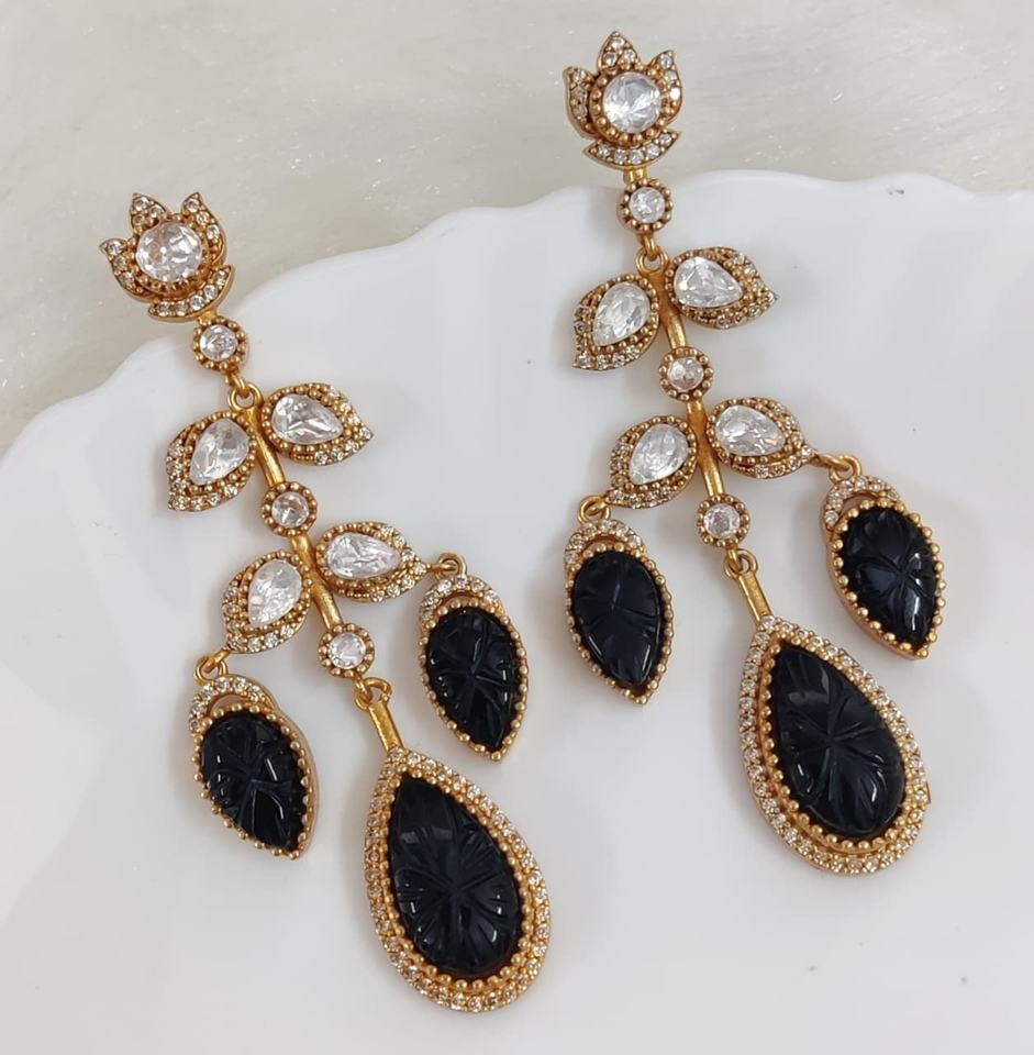 ต่างหูเพชรโมอิสและแกะสลักหิน