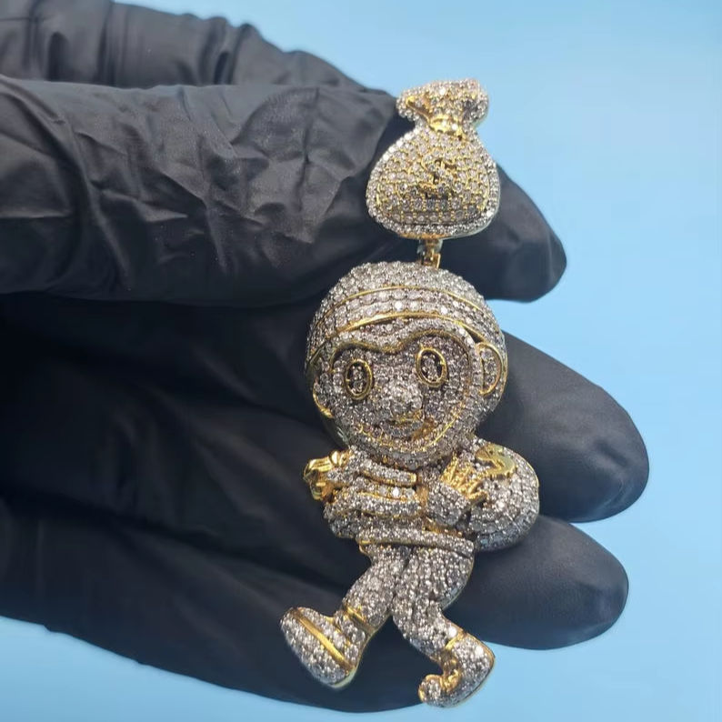จี้โมอิสไรต์รูปเด็กชายถือถุงเงิน