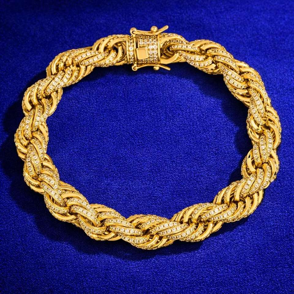 สร้อยข้อมือโมอิสซาไนต์ทรงบริลเลียนต์คัท ชุบทอง 14K บนเงินสเตอร์ลิง ดีไซน์หรูหรา สไตล์ฮิปฮอป สำหรับทุกเพศ เหมาะสำหรับใส่ทุกวัน เป็นของขวัญ