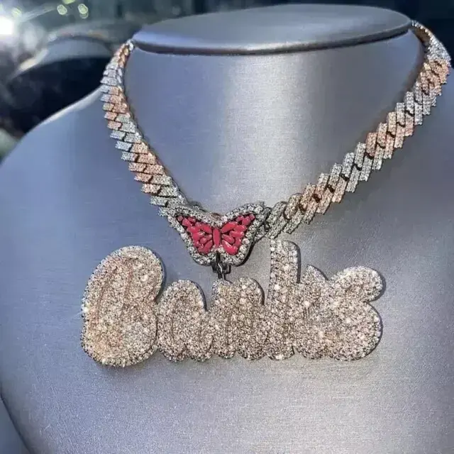 จี้ผีเสื้อมอยส์ซาไนต์พร้อมจี้ชื่อสั่งทำ สร้อยคอฮิปฮอปประดับเพชร ดีไซน์หรูหรา จี้แบบสั่งทำส่วนตัว
