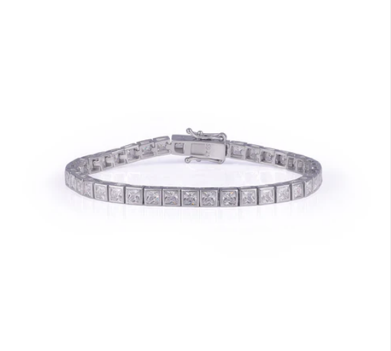 สร้อยข้อมือโมอิสซาไนต์ เงินแท้ 925 ทรงเหลี่ยมมรกต สร้อยข้อมือเพชร VVS1 โมอิสซาไนต์ผ่านการทดสอบเพชร ของขวัญเครื่องประดับ