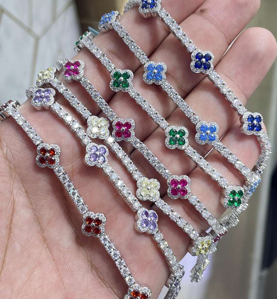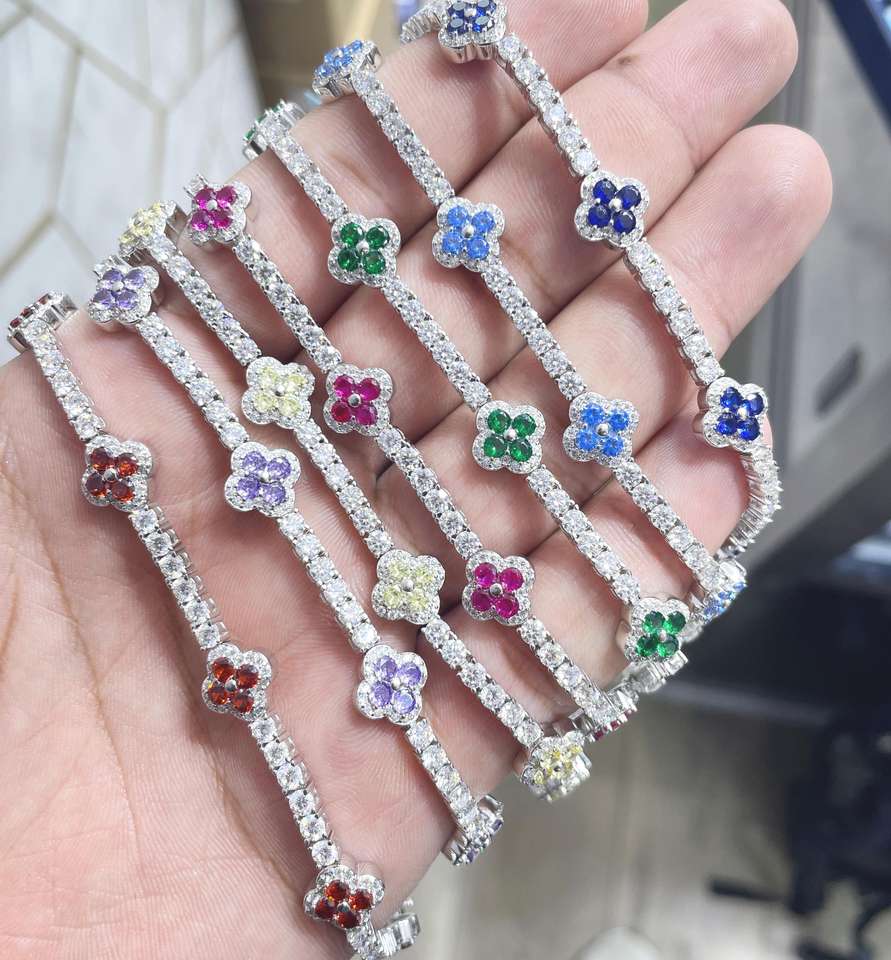 สร้อยข้อมือโมอิสซาไนต์รูปใบโคลเวอร์สี่แฉก เงินแท้ 925 ชุบทอง ดีไซน์ทันสมัยสำหรับผู้หญิง