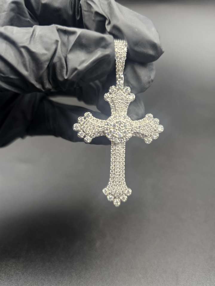 จี้กางเขนมอยส์ซาไนต์ สไตล์แร็ปเปอร์ ประดับเพชรหรูหรา เงินแท้ 925 ชุบทอง 18K ฮิปฮอป สื่อถึงความศรัทธาทางศาสนา ของขวัญสำหรับพิธีบัพติศมา