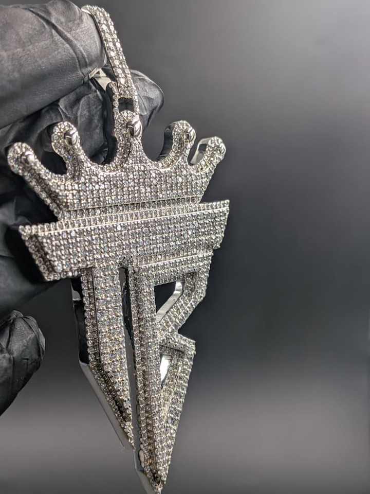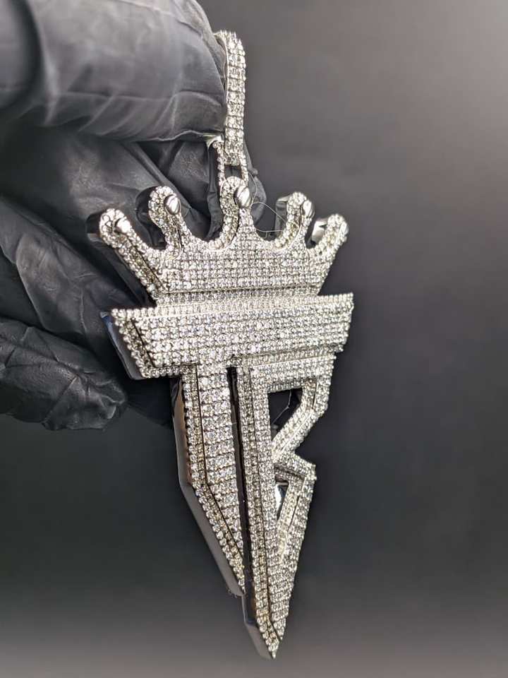 Design: จี้ห้อยคอรูปมงกุฎและตัวอักษร T B ประดับมอยส์ซาไนต์
