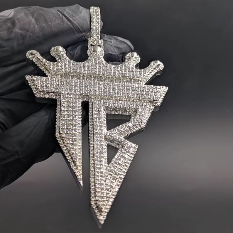 จี้เพชรโมอิสซาไนต์แบบกำหนดเองได้ รูปมงกุฎและตัวอักษร T B สไตล์ฮิปฮอป สำหรับงานปาร์ตี้ ทำจากเงินแท้ 925 เครื่องประดับจี้และชาร์ม