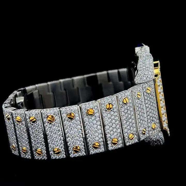 นาฬิกาข้อมือผู้ชายอัตโนมัติ ระบบจักรกล สแตนเลสสตีล ประดับเพชรแท้และเพชรโมอิสซาไนต์ ดีไซน์หรูหรา