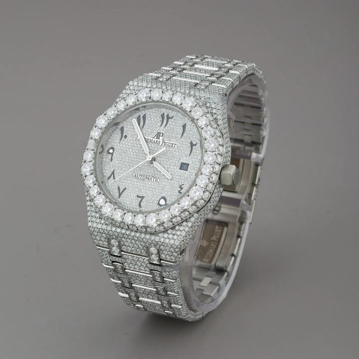 นาฬิกาฮิปฮอปประดับเพชรโมอิสซาไนต์ ตัวเรือนเงินแท้ 925 ชุบเงิน พร้อมเพชรทรงกลมเจียระไนแบบบริลเลียนท์ ประดับเพชรแบบไอซ์เอาท์ ระดับความสะอาด VVS