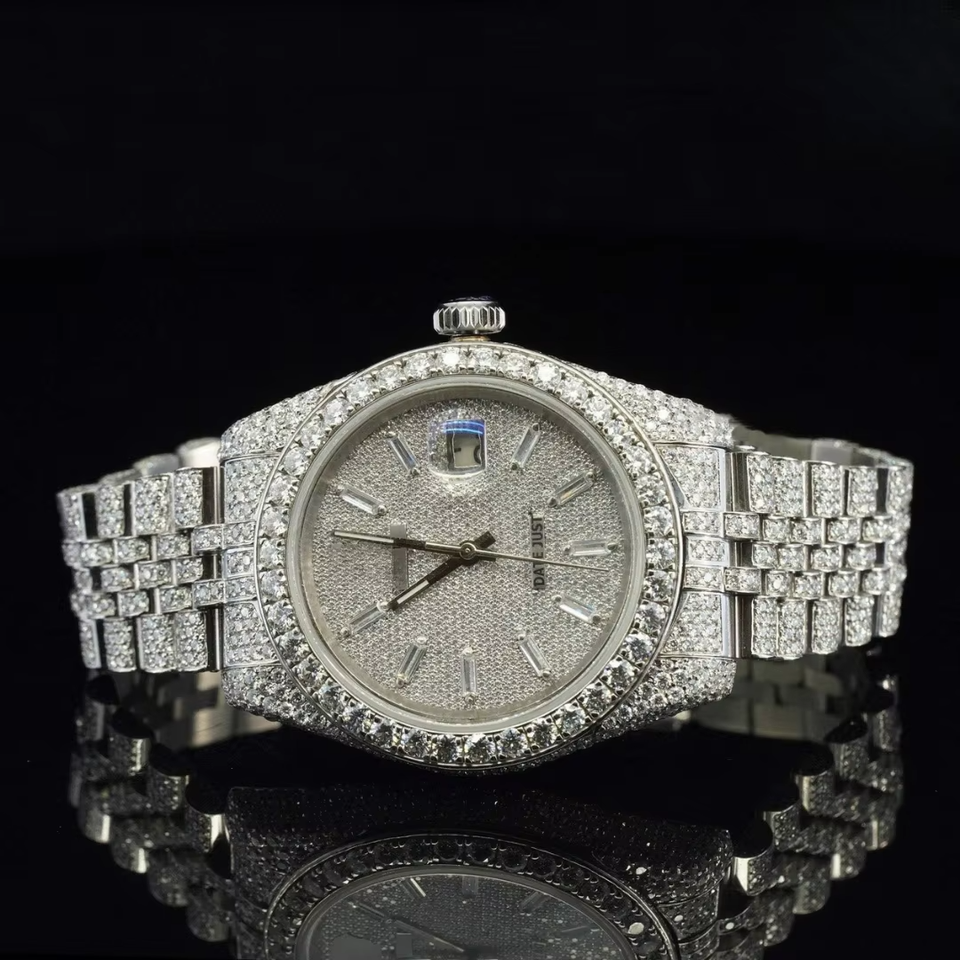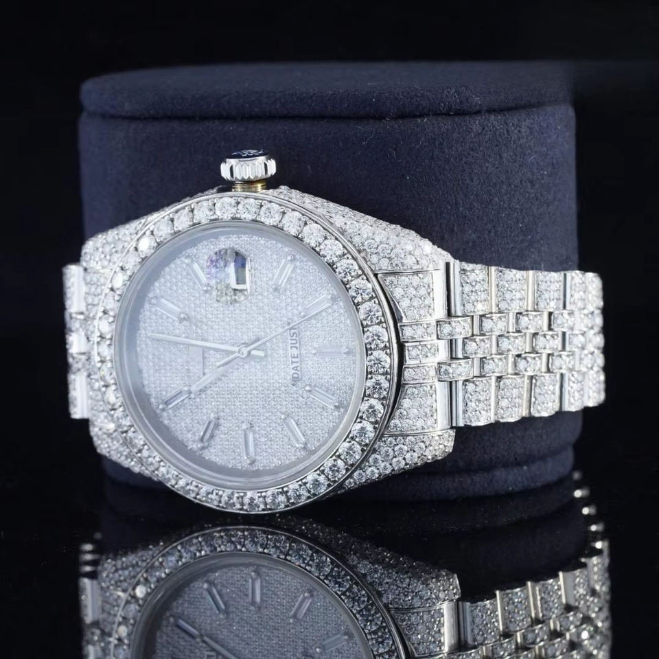 Moissanite Diamond Iced Out Watch for Men Trendy Hip Hop Style Waterproof Quartz Movement Timepiece Fashion Wristwatch