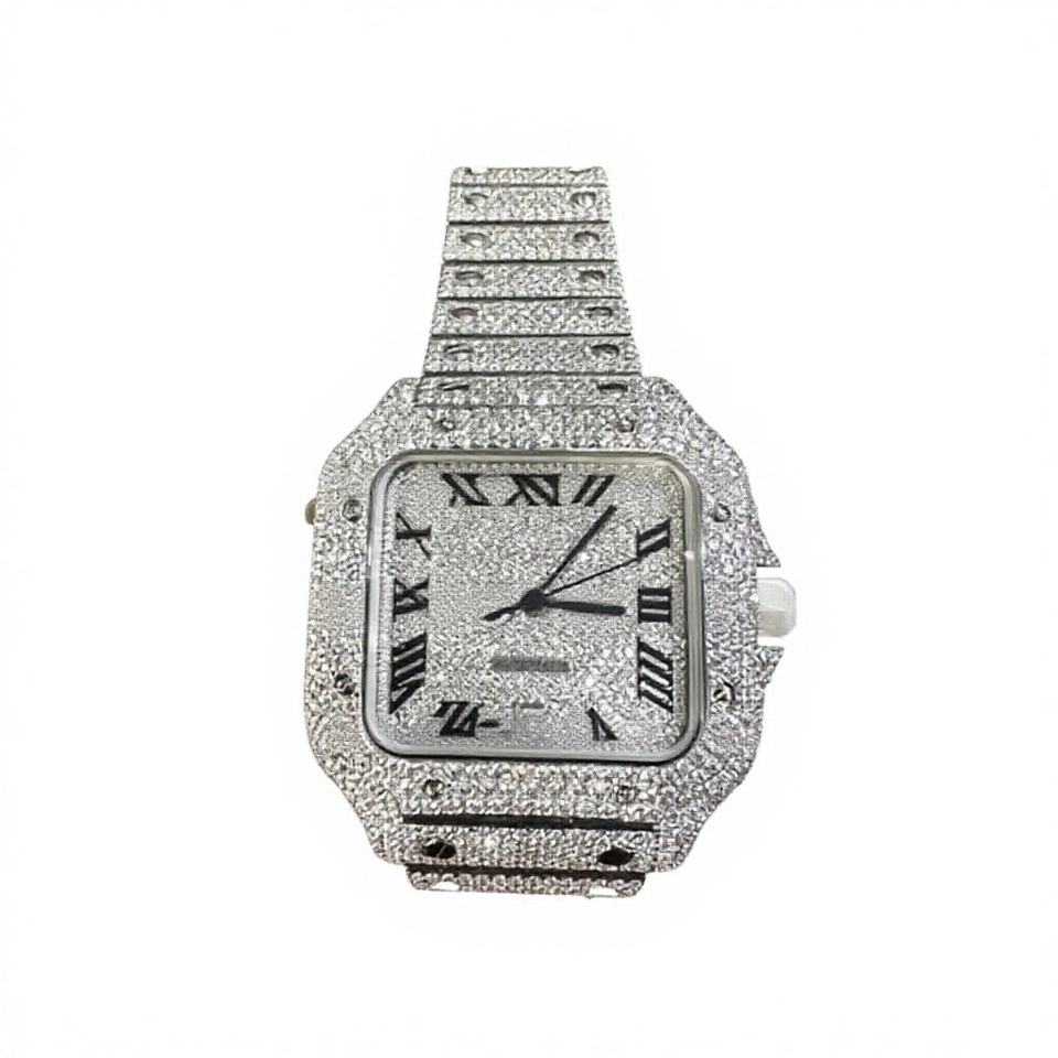 นาฬิกาข้อมือทรงเหลี่ยมประดับเพชรโมอิสซาไนต์ ตัวเรือนสแตนเลสสตีล ระบบอัตโนมัติ กันน้ำ 10 บาร์ สายรัดข้อมือแบบตัวล็อค ผลิตในอินเดีย