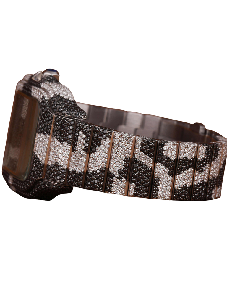 นาฬิกาข้อมือผู้ชาย Moissanite Diamond Smart Quartz ขนาด 20 มม. หน้าปัดสีดำและสีขาว ดีไซน์หรูหราสั่งทำพิเศษ ประดับเพชรเต็มเรือน