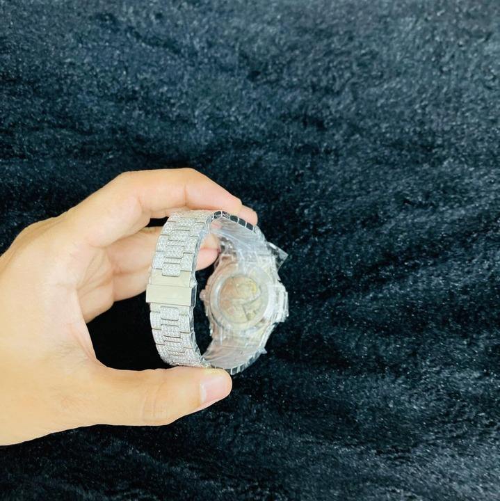 นาฬิกาฮิปฮอปประดับเพชรโมอิสซาไนต์สำหรับผู้ชาย ดีไซน์สองสี ประดับเพชรเต็มเรือน กลไกควอตซ์แท้ นาฬิกาข้อมือแฟชั่นหรูหรา
