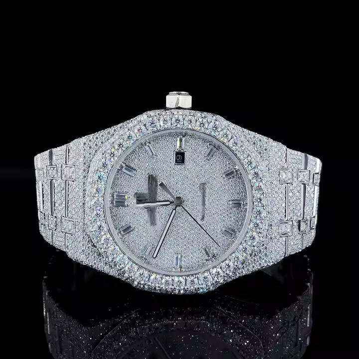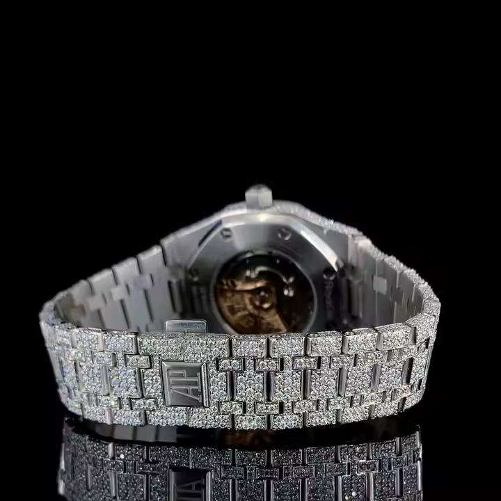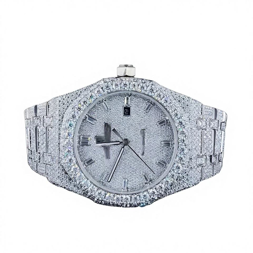 นาฬิกาประดับเพชรโมอิสซาไนต์ พร้อมกลไกควอตซ์ ตัวเรือนสแตนเลสสตีล ฝังเพชรเต็มเรือน นาฬิกาหรูสำหรับผู้ชายและผู้หญิง