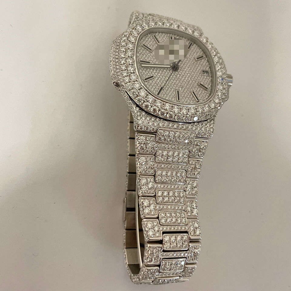นาฬิกาเพชรโมอิสซาไนต์, นาฬิกาข้อมือผู้ชาย, นาฬิกาโมอิสซาไนต์หรูหรา, นาฬิกาฮิปฮอปอัตโนมัติสองสีสำหรับผู้ชาย