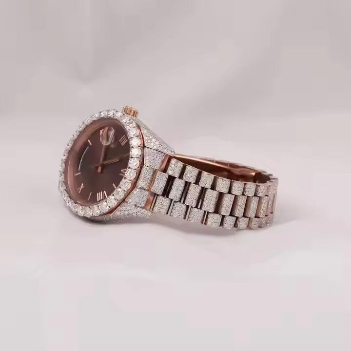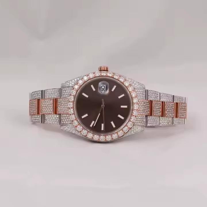 นาฬิกาเพชรโมอิสซาไนต์ นาฬิกาข้อมืออนาล็อกโมอิสซาไนต์ ความใส VVS ของขวัญสำหรับผู้ชาย ผู้หญิง นาฬิกาแบบกำหนดเองได้
