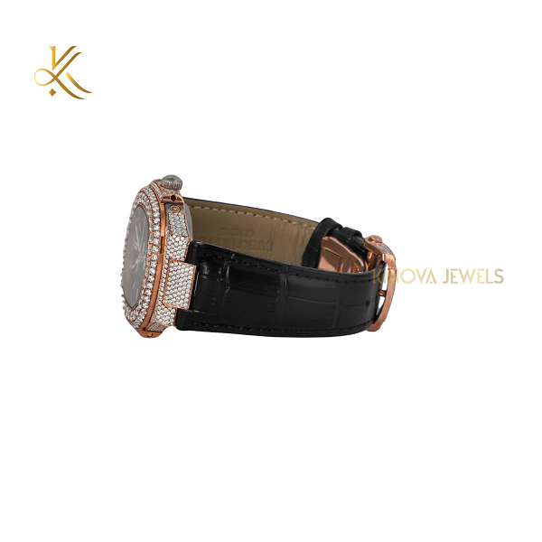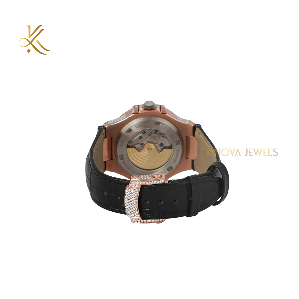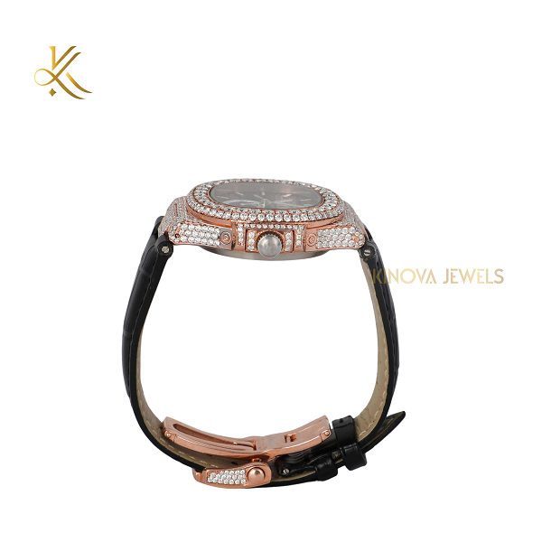 นาฬิกาเพชรโมอิสตกแต่งด้วยโทนสีคู่ทั้งสีทองและสีเงินพร้อมด้วยหน้าปัดเย็นสำหรับแฟชั่นอเนกประสงค์
