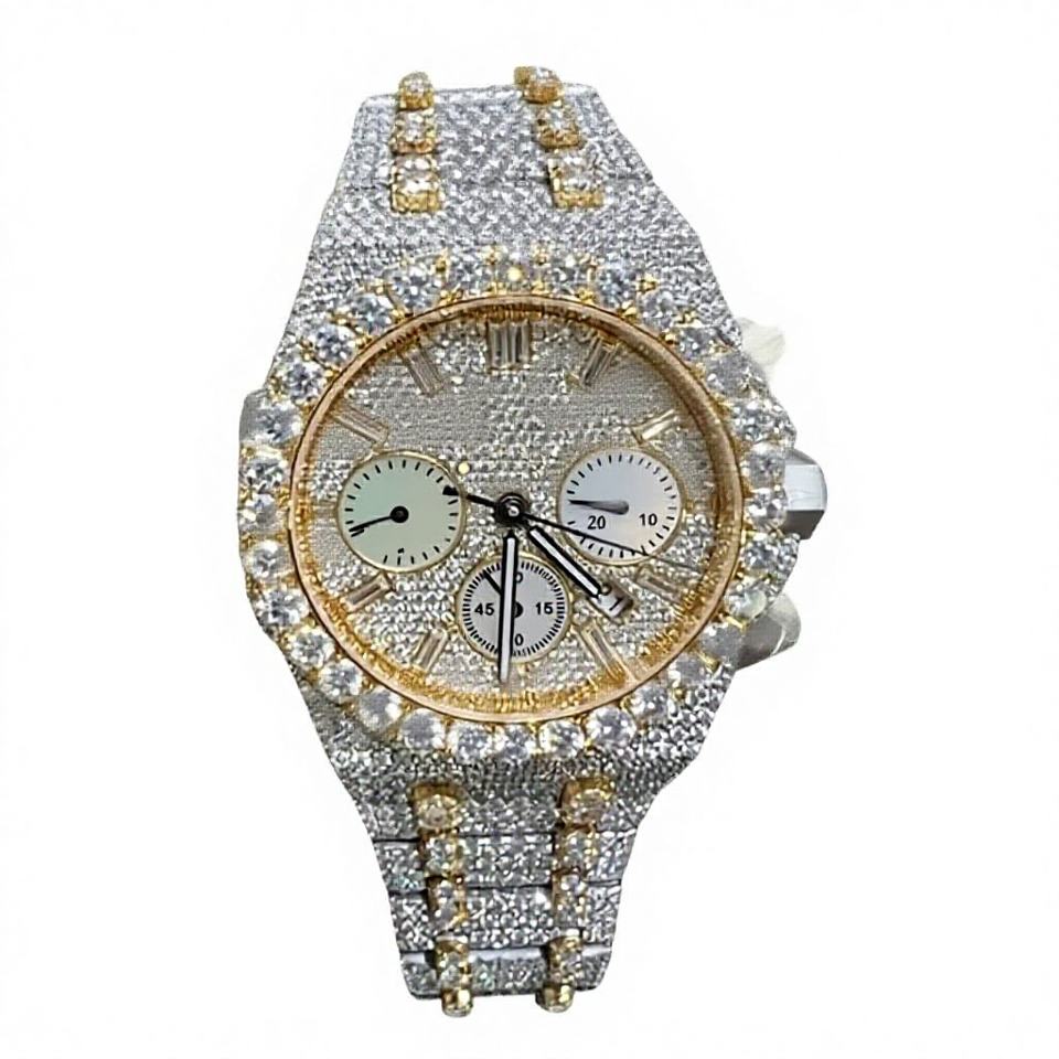 นาฬิกาข้อมือหรูหราสำหรับผู้หญิงประดับเพชรโมอิสซาไนต์ หน้าปัดกระจกสีขาวแบบตัวเลข กันน้ำได้ 10 บาร์ สายสแตนเลสสตีล
