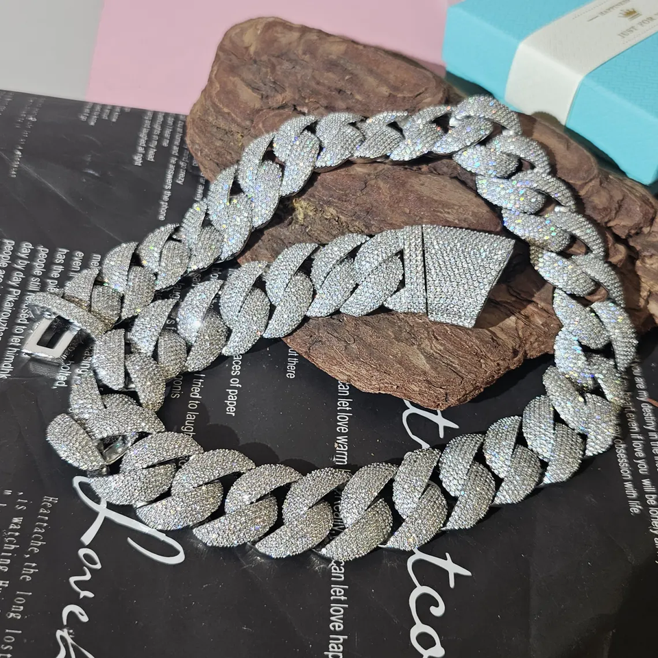 สร้อยคอคิวบาลิงค์ประดับเพชรโมอิสซาไนต์ เงินแท้ 925 สำหรับแฟชั่นฮิปฮอปสุดเท่