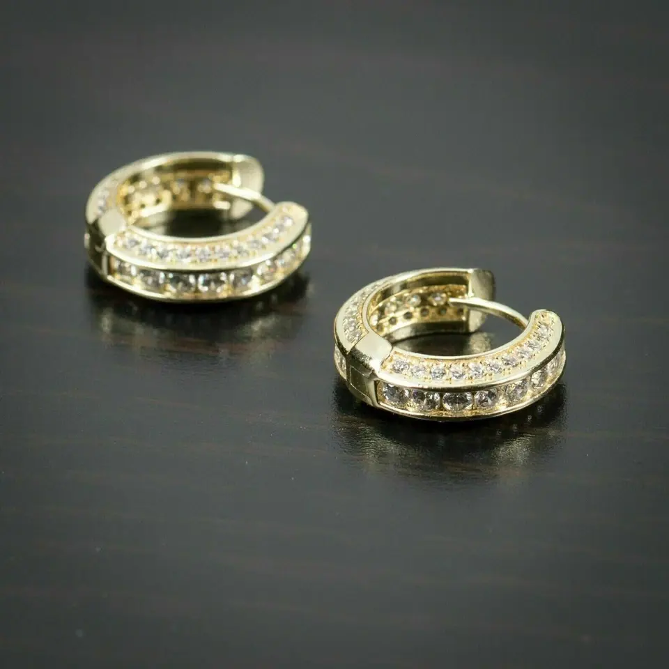 ต่างหูห่วงแถวคู่มอยซาไนต์ เงินแท้ 925 ชุบทอง ดีไซน์หรูหรา สง่างาม เงางาม