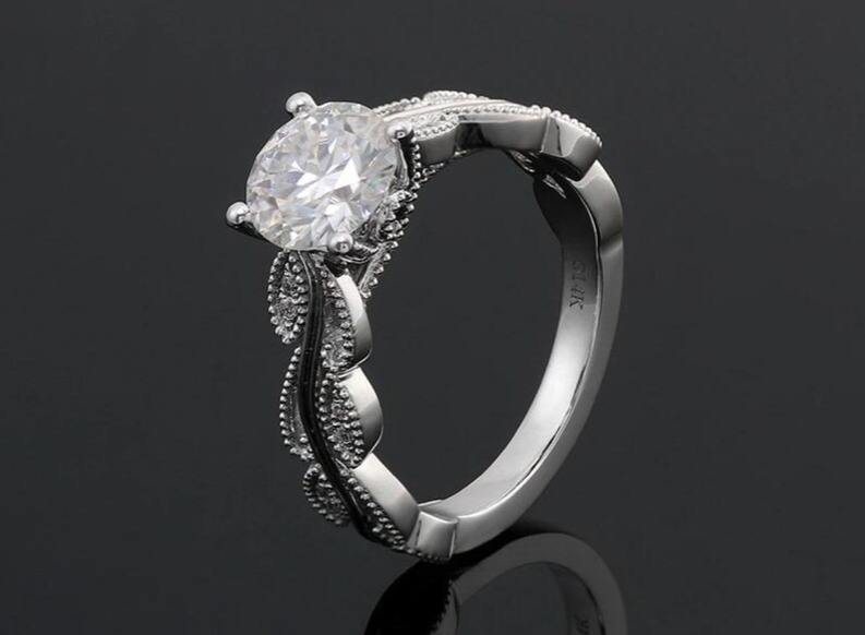 Moissanite แหวนหมั้น Art Deco 2 CT รอบBrilliant Cutแหวน 4 ง่ามเงิน Moissanite แหวนของขวัญสําหรับเธอ