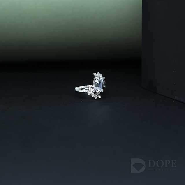 แหวนเพชรโมอิสสำหรับทุกเพศทำจากสเตนเลส18KT ชุบทองมีก้านแยกสำหรับสวมใส่ทุกวัน