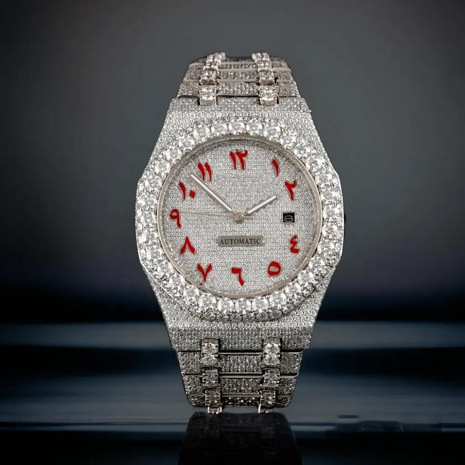Moissanite นาฬิกาข้อมือสไตล์ญี่ปุ่นระบบอัตโนมัติเพชรเต็มรูปแบบจากผู้ผลิตอินเดีย