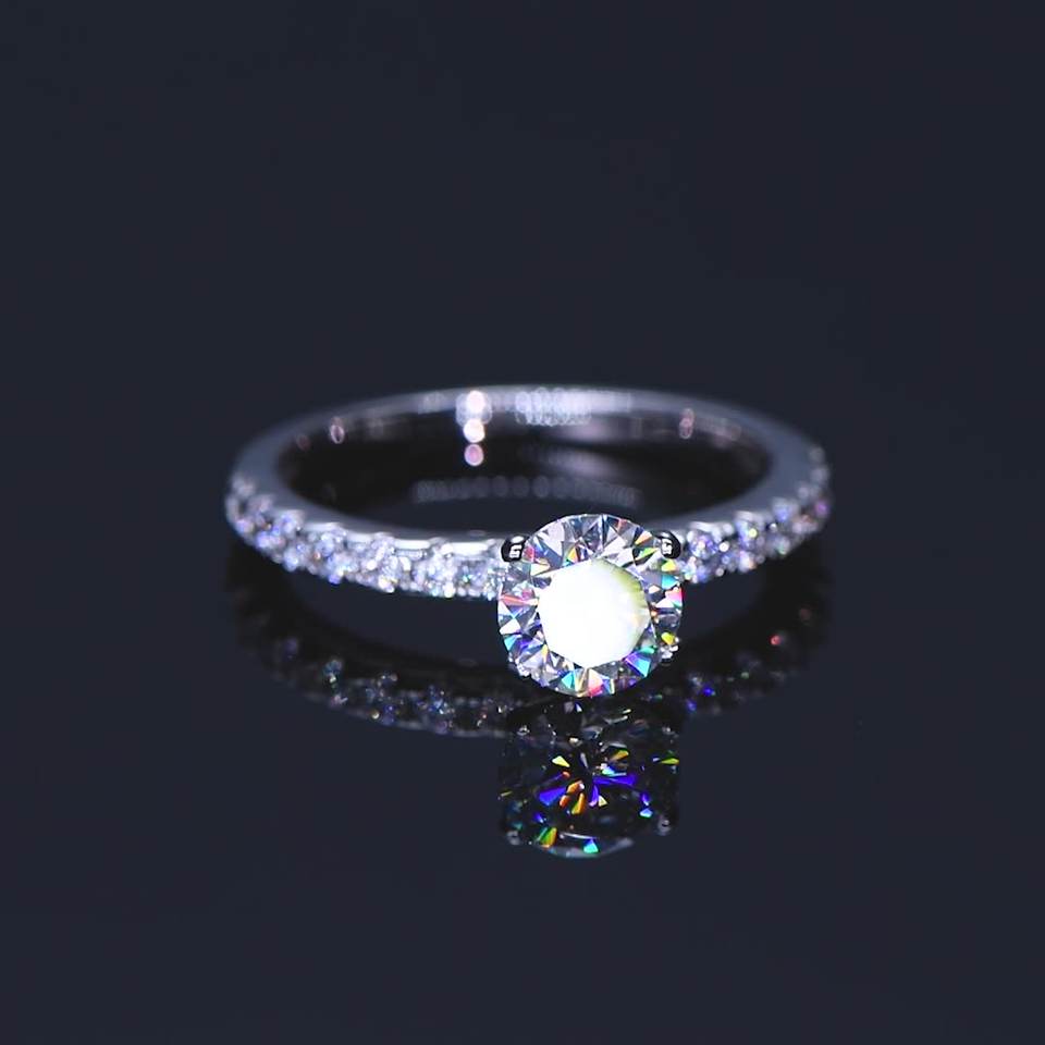 แหวนหมั้นเพชรโมอิส S925ขนาด6มม. สำหรับผู้หญิงแหวนเพชรโมอิส0.8CT สีเงินสเตอร์ลิง