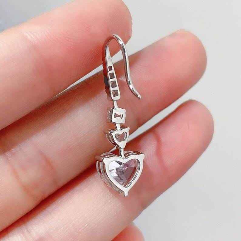 ต่างหูเพชรทรงหัวใจมอยซาไนต์พร้อมจี้ห้อยประดับเงิน 925 เครื่องประดับโรแมนติกสำหรับผู้หญิงเป็นของขวัญหมั้น