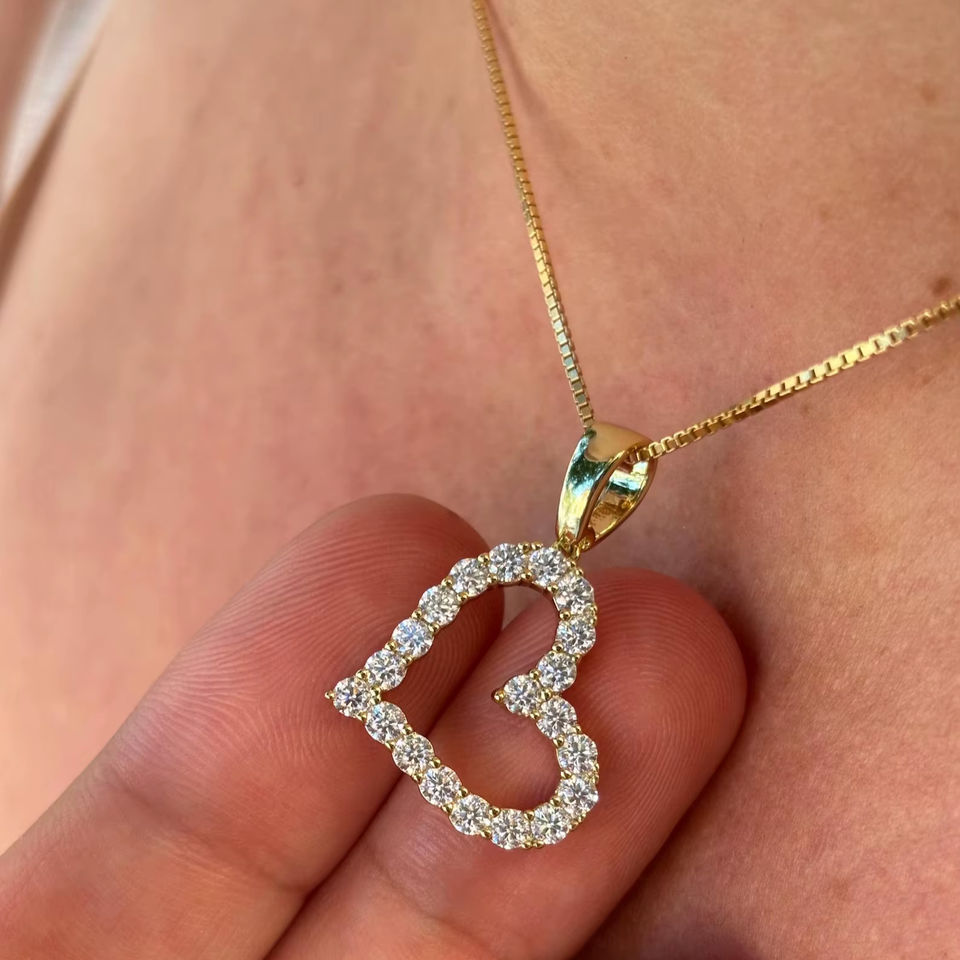 สร้อยคอโมอิสซาไนต์รูปหัวใจ เงินสเตอร์ลิงและชุบทองคำ 14K จี้รูปหัวใจแบบมินิมอล เครื่องประดับสำหรับงานปาร์ตี้
