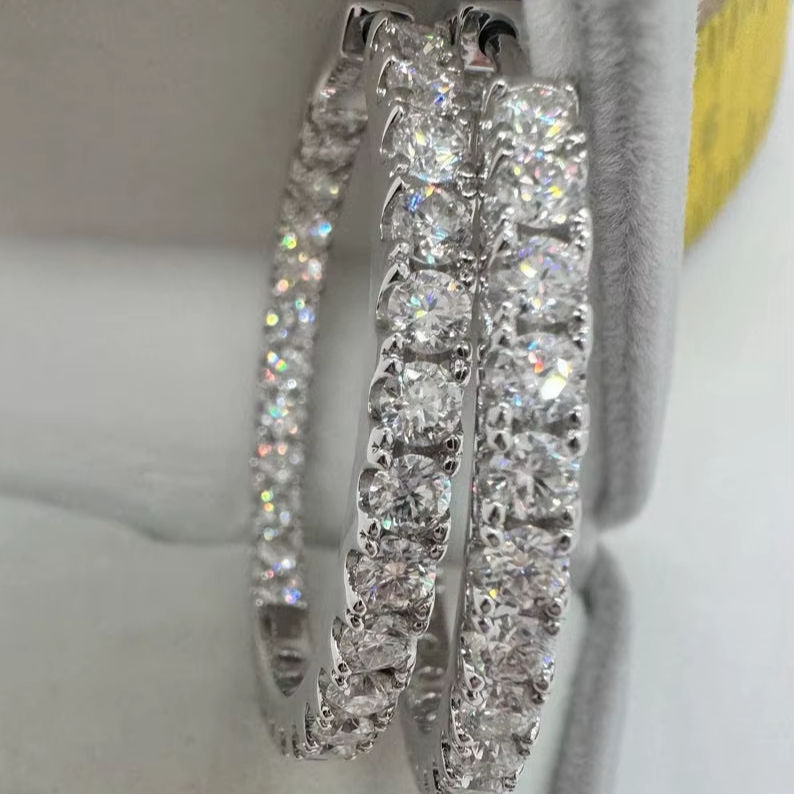 ต่างหูห่วงมอสซาไนต์ ดีไซน์ด้านใน ชุบทอง เงินสเตอร์ลิง น่ารัก แฟชั่นผู้หญิง เครื่องประดับหรูหรา ต่างหูสวยโดดเด่น