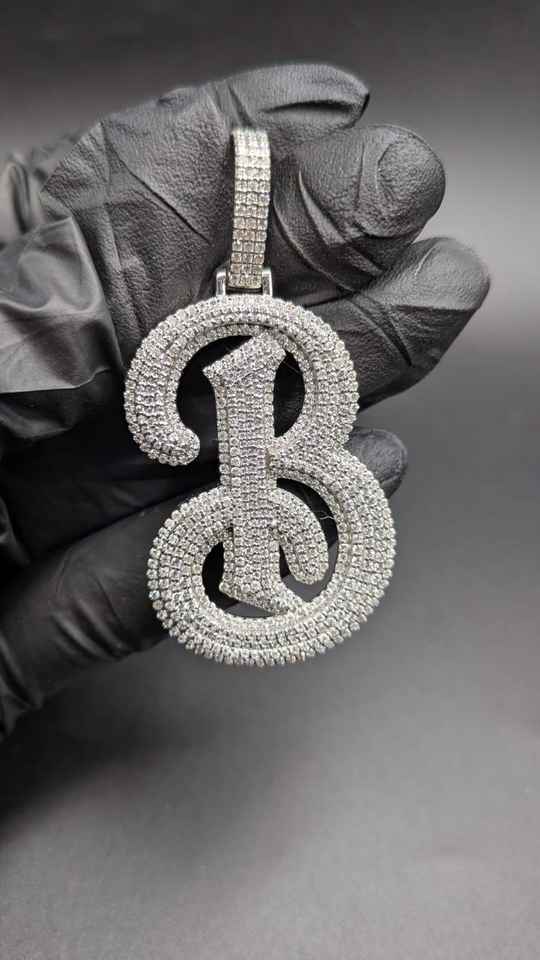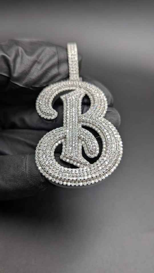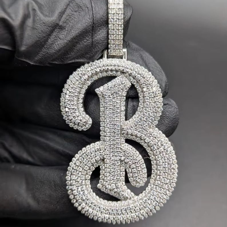 จี้เพชรโมอิสซาไนต์รูปตัวอักษร B แบบเขียนลายมือ ประดับเพชรเต็มตัว สำหรับงานปาร์ตี้ฮิปฮอป ทำจากเงินแท้ 925 จี้และเครื่องประดับคุณภาพสูง