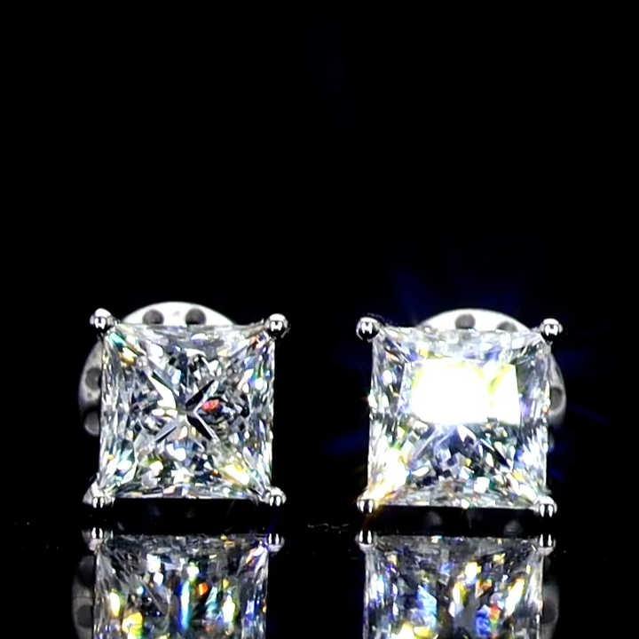 เครื่องประดับเพชรโมอิส VVS ต่างหูตัดรูปเจ้าหญิงต่างหูทองแดงแบบฮิปฮอปฝังเพทายคุณภาพสูงต่างหูสตั๊ดคุณภาพดี