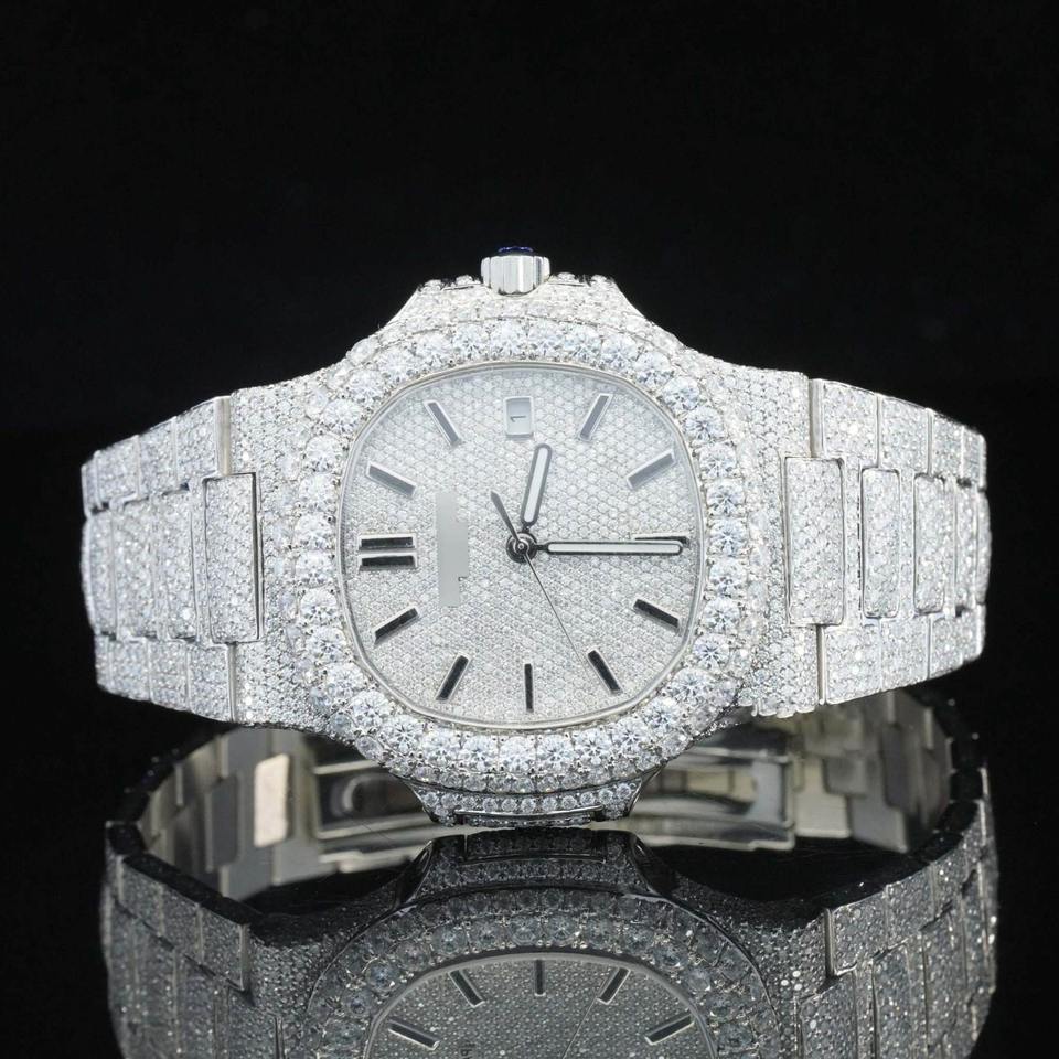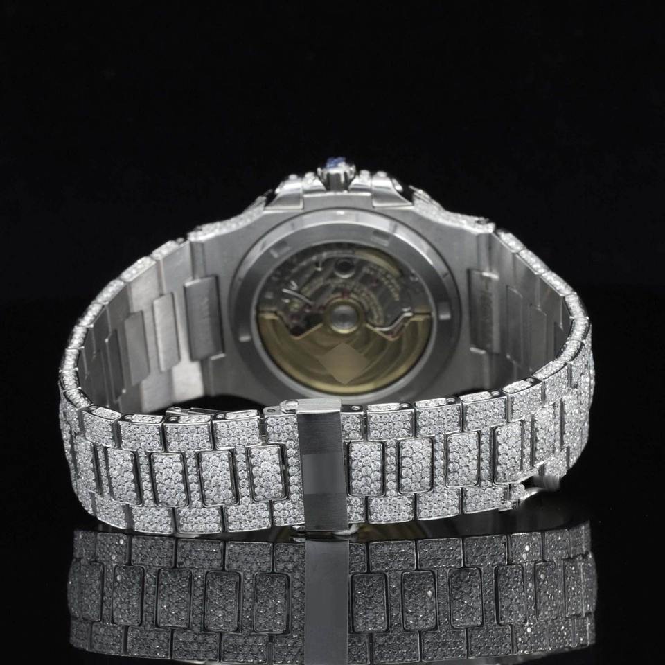 นาฬิกาอัตโนมัติประดับเพชรโมอิสซาไนต์สังเคราะห์ พร้อมหน้าปัดลายแฮชมาร์ค ระบบจักรกลญี่ปุ่น ฟังก์ชั่นวันที่ ตัวเรือนสแตนเลสสตีลสุดหรู
