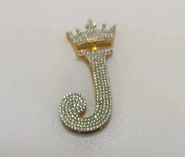 จี้รูปตัวอักษร J ประดับมงกุฎ ทำจากมอสซาไนต์ เงินแท้ 925 ชุบทองคำสีกุหลาบ สไตล์ฮิปฮอป ประดับเพชร สำหรับผู้ชายและผู้หญิง สามารถสั่งทำได้