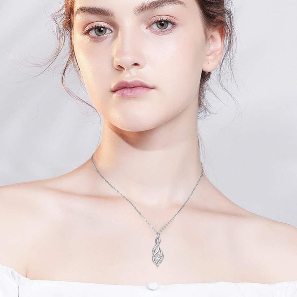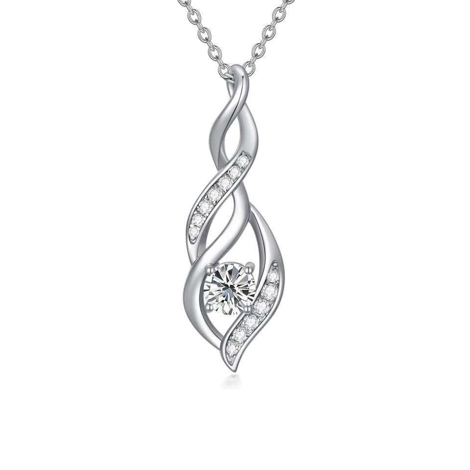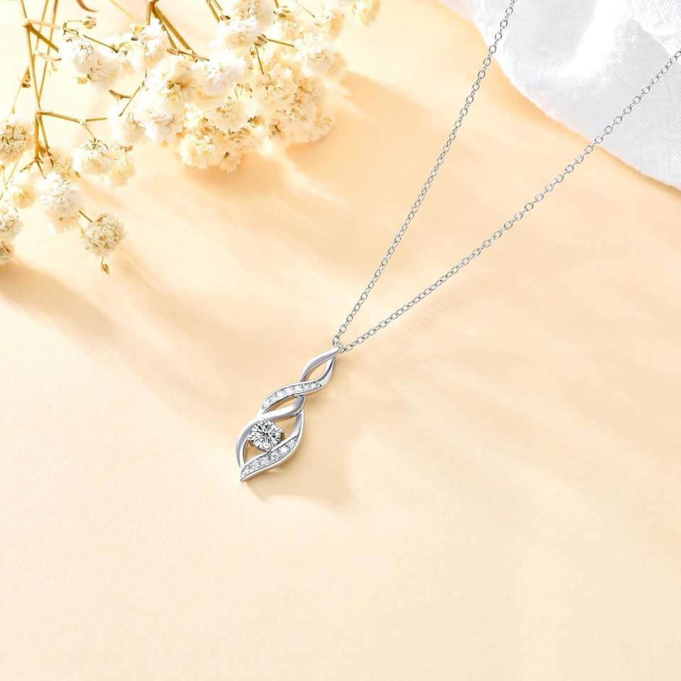 สร้อยคอเพชรโมอิสสำหรับผู้หญิงจี้ห้อยแบบอินฟินิตี้ทรงบิดจี้ชุบทองคำขาวจี้เพชรโมอิส