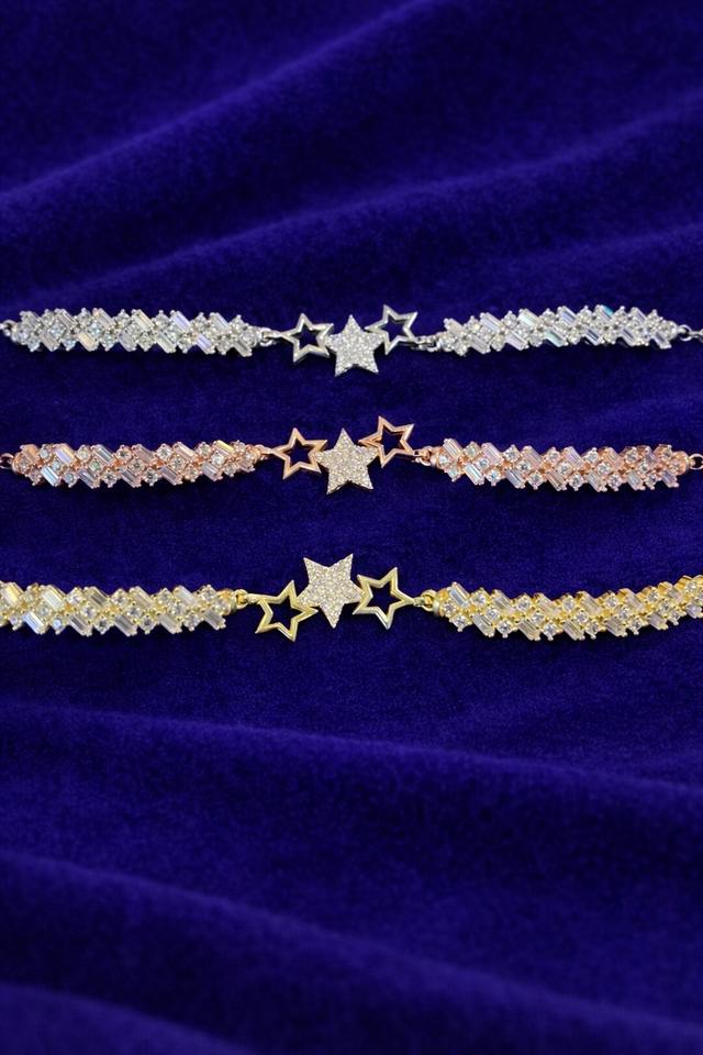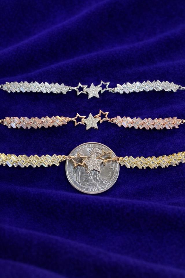 กำไลข้อมือเทนนิสสามดาว ชุบทองคำขาวและทองชมพู เงินแท้ 925 ประดับด้วยมอสซาไนต์ ของขวัญเครื่องประดับสำหรับใส่ทุกวัน