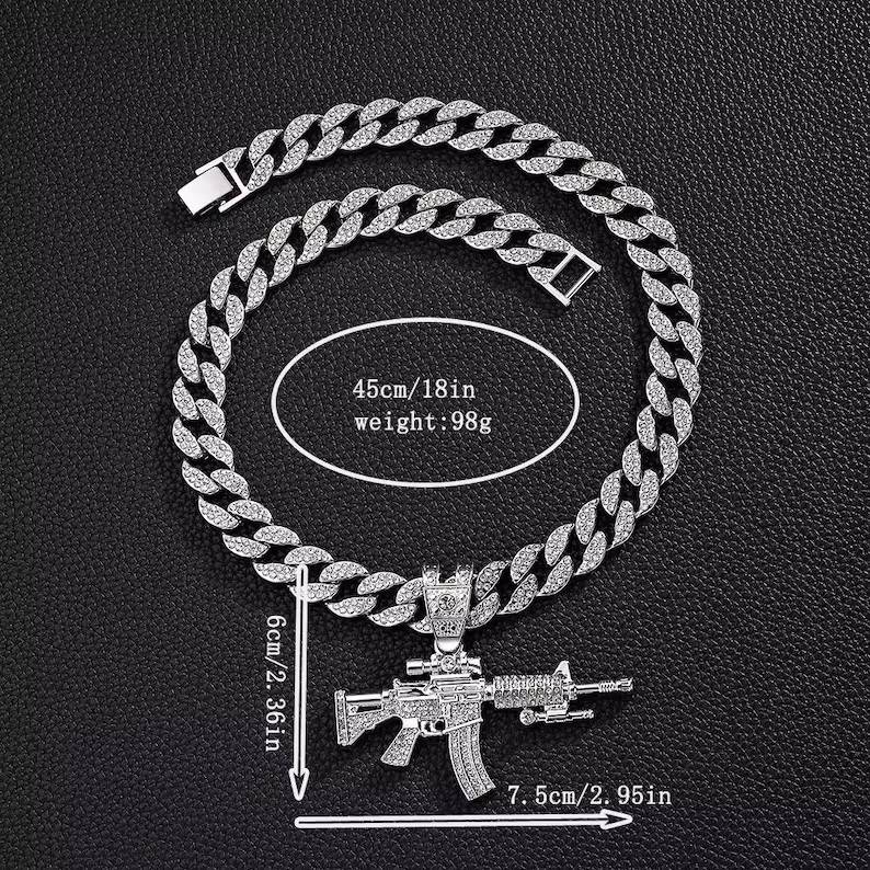 Moissanite Rifle Style Pendant On 925 Silver Plated Iced Out Cuban Link Chain For Bold Urban Fashion Jewelry