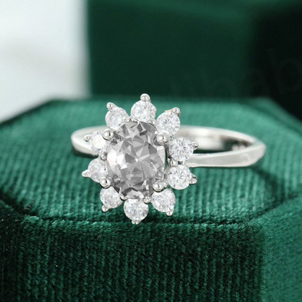 แหวนมอสซาไนต์ เงินแท้ 925 ทรงฮาโล วินเทจ แหวนหมั้นผู้หญิง ดีไซน์ไม่ซ้ำใคร สีเทา แหวนหมั้นมอสซาไนต์ สไตล์อาร์ตเดโค แหวนรูปดอกไม้