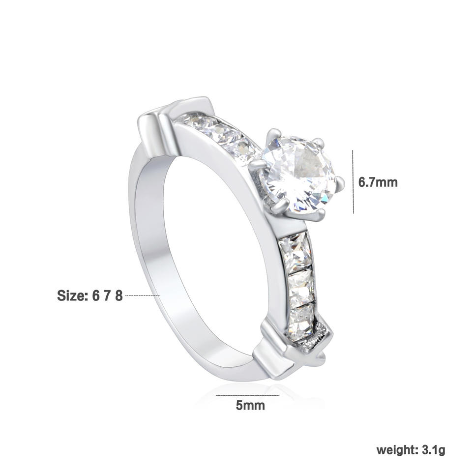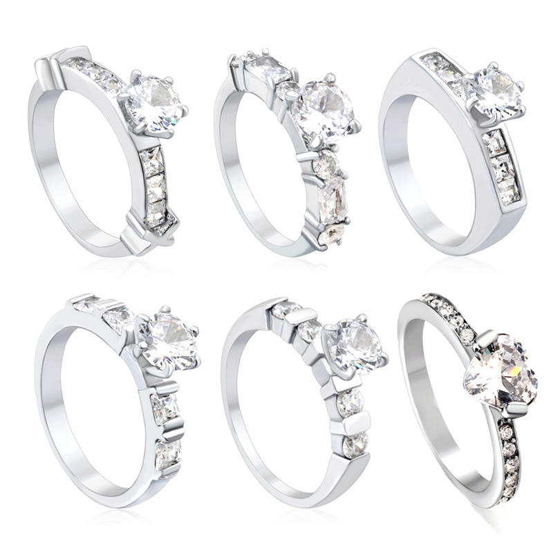แหวนมอยส์ซาไนต์สำหรับผู้หญิง ประดับเพชรทรงกลมแบบกรงเล็บ ชุดเครื่องประดับหมั้น 6 ชิ้น สีเงิน