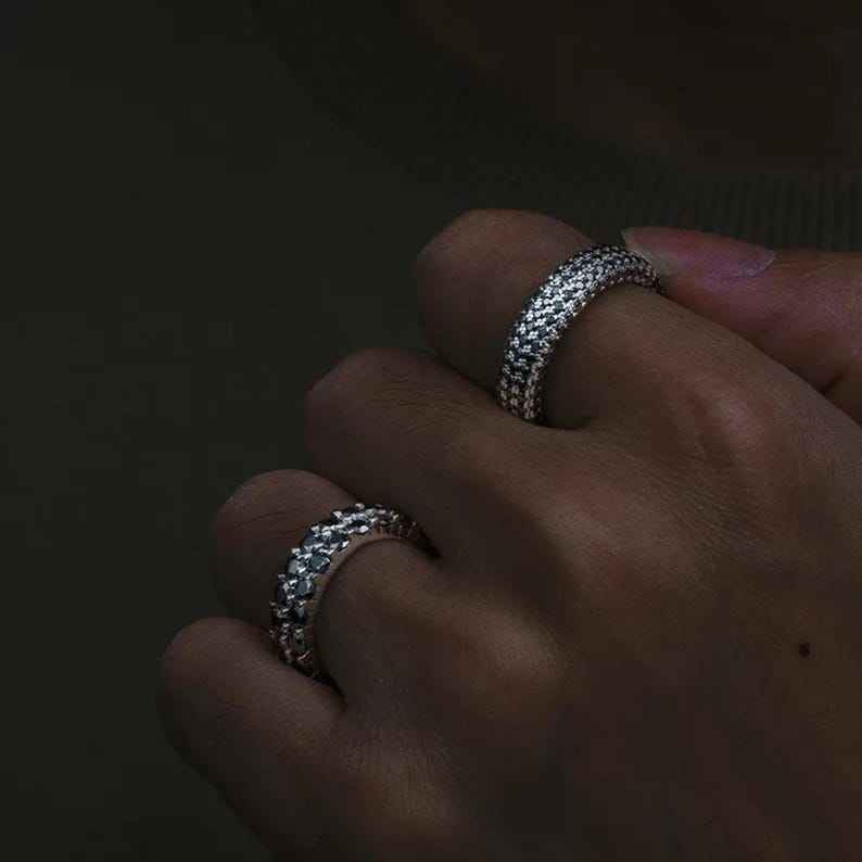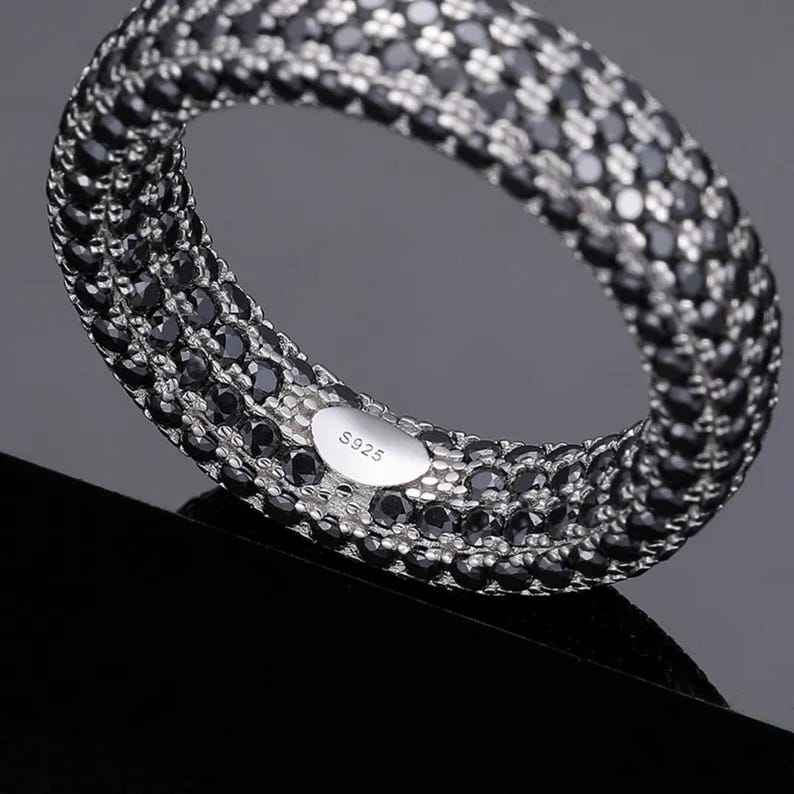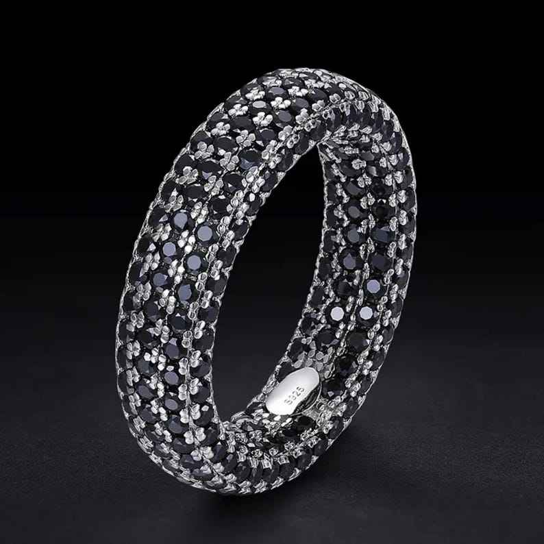 แหวนเพชรโมอิสซาไนต์ทรงกลมสีดำแบบเต็มวงสำหรับทุกเพศ ทำจากเงินแท้ 925 ของแท้ เหมาะเป็นของขวัญแต่งงานสุดพิเศษสำหรับคู่รัก