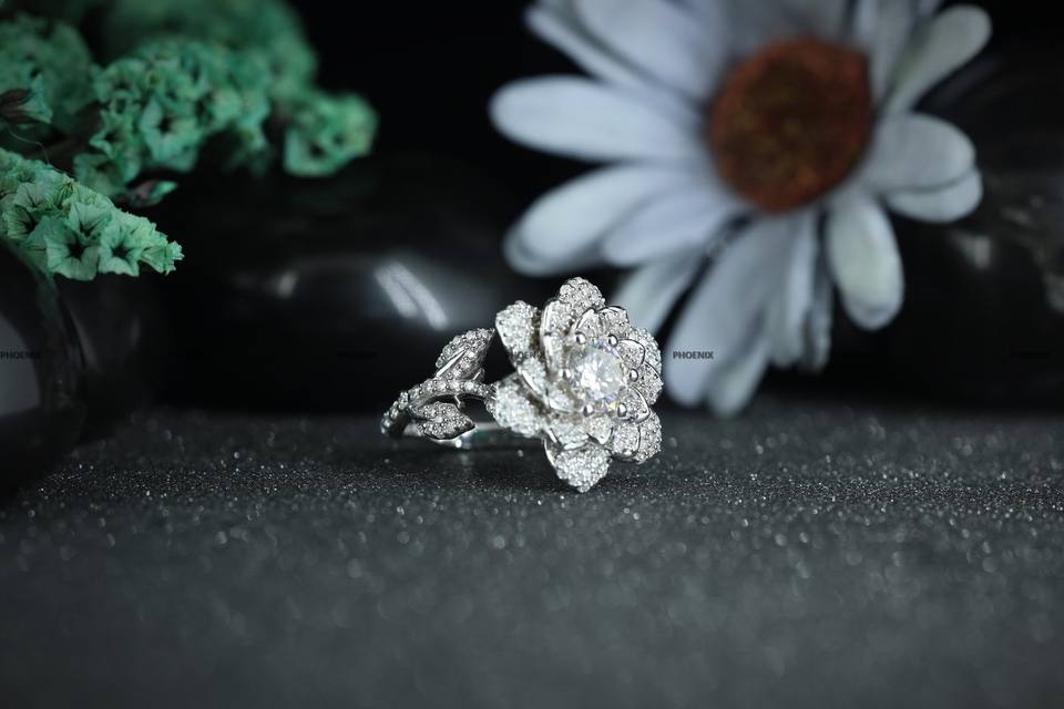 แหวนหมั้นทรงกลมเจียระไนแบบกลมประกายรูปดอกกุหลาบ ทำจากเงินแท้ 925 สำหรับผู้หญิง โดย Phoenix Enterprise