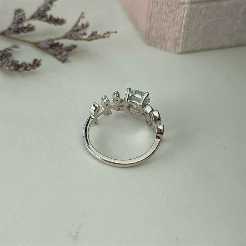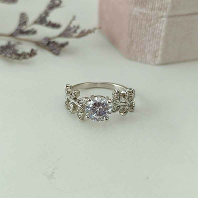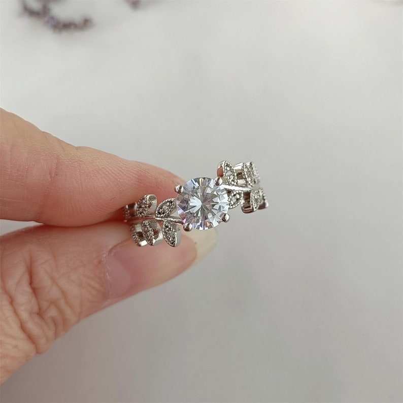 แหวนรูปใบไม้ประดับเพชรโมอิสซาไนต์ทรงกลมสำหรับผู้หญิง เงินแท้ 925 ดีไซน์อาร์ตเดโค สำหรับงานแต่งงาน ของขวัญเจ้าสาว และงานปาร์ตี้