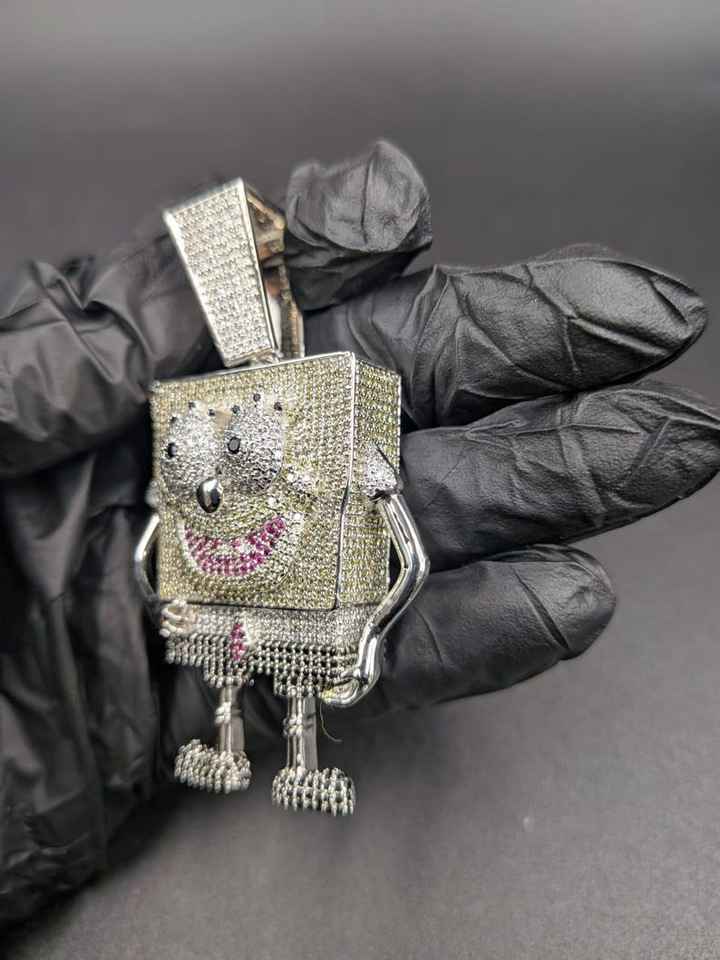 จี้รูปการ์ตูนยิ้มทรงสี่เหลี่ยมประดับเพชรโมอิสซาไนต์ทรงกลม พร้อมเงินแท้ 925 สำหรับจี้และชาร์มเครื่องประดับชั้นดี
