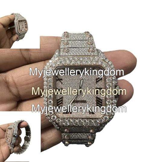 นาฬิกาข้อมือผู้ชายและผู้หญิง ประดับเพชรโมอิสซาไนต์และสแตนเลสสตีลเต็มเรือน ตัวเลขโรมัน กันน้ำได้ 10 บาร์