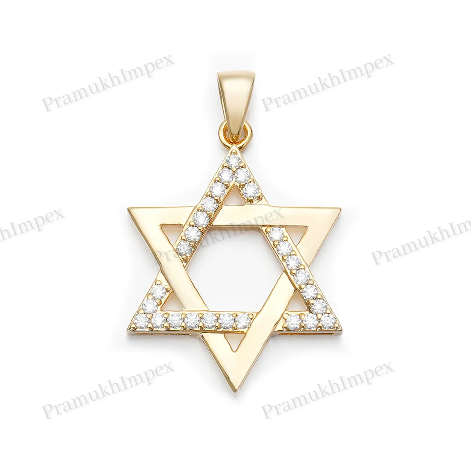 จี้ดาวเดวิดมอสซาไนต์ เงินสเตอร์ลิงชุบทอง ประดับเพชรแบบกึ่งเต็ม สร้อยคอสัญลักษณ์ชาวยิว สไตล์ฮิปฮอป สำหรับทุกเพศ