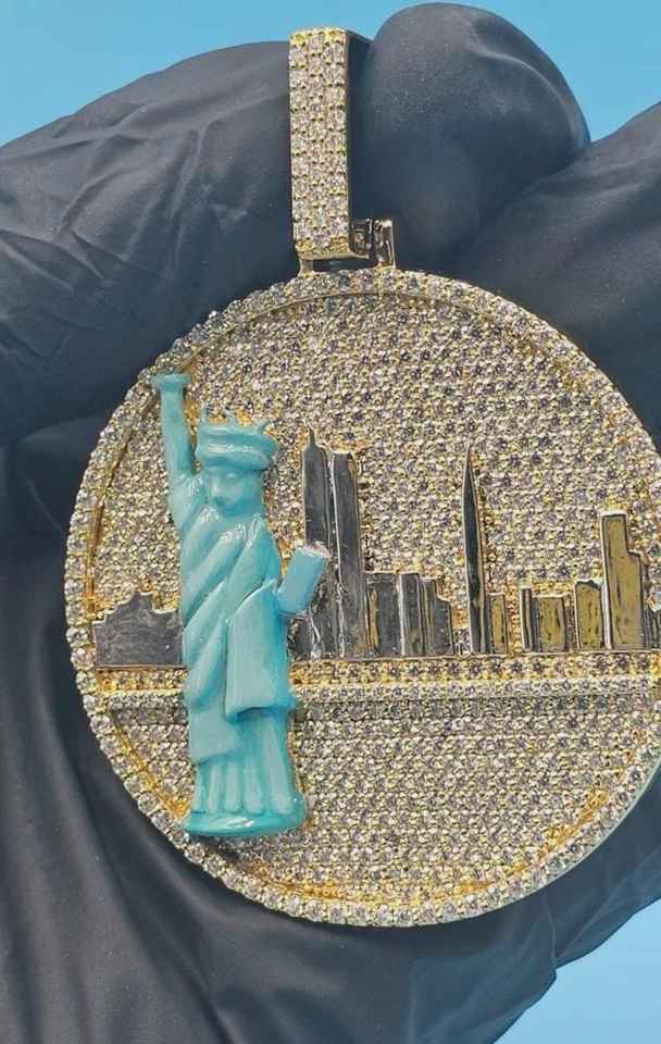 จี้โมอิสซาไนต์รูปเทพีเสรีภาพพร้อมเส้นขอบฟ้ายนวยอร์ก ประดับเพชรหรูหรา ชุบทองคำแท้ เงินแท้ 925 เครื่องประดับจี้และชาร์ม