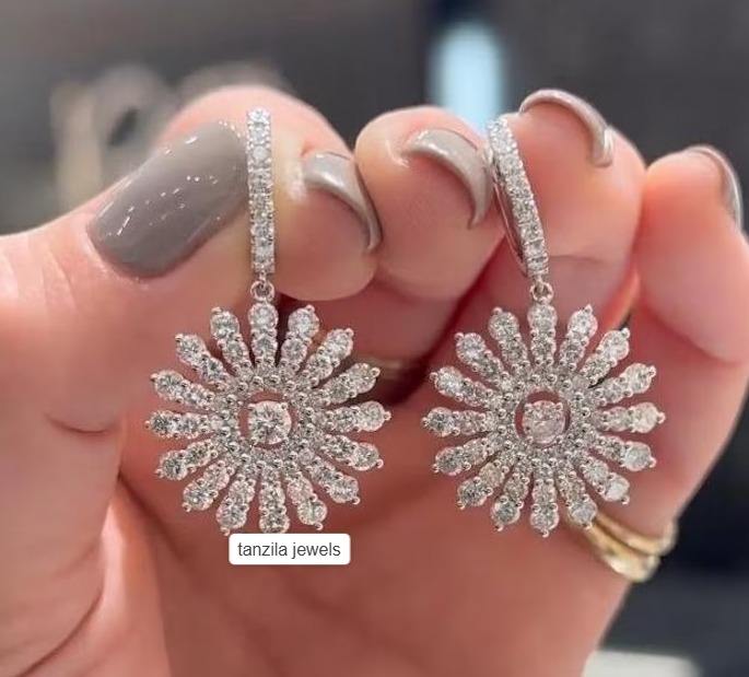 ต่างหูเพชรโมอิสสเตอร์ลิงก้านดอกเงินต่างหูห้อยแบบปรับแต่งได้สวยงาม
