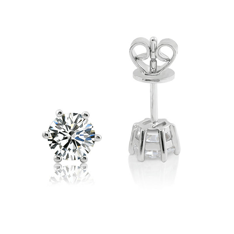 ต่างหูเม็ดเดี่ยวทองคำขาวใส่ได้ทั้งชายและหญิงเครื่องประดับแฟชั่นโมอิสซาไนต์ตัดกลมสีเดิมสำหรับเป็นของขวัญ