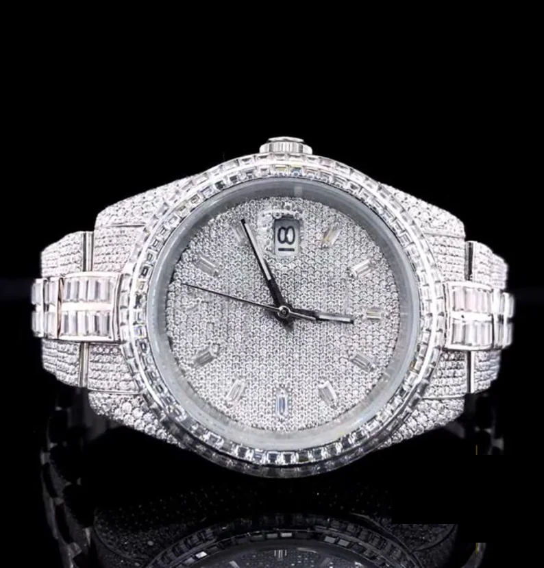 นาฬิกาควอตซ์สแตนเลสประดับเพชรโมอิสซาไนต์ พร้อมหินระยิบระยับสำหรับงานแต่งงานสุดหรู